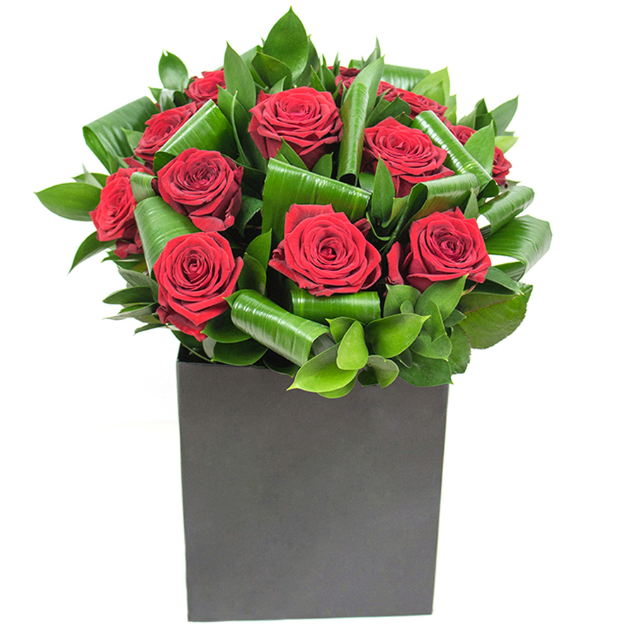 Experience the unparalleled beauty of our stunning bouquet, a perfect blend of vibrant red roses, lush aspidistra leaves, and elegant ruscus. Each element is meticulously hand-selected to ensure the highest quality and freshness, bringing style and grace to any space.